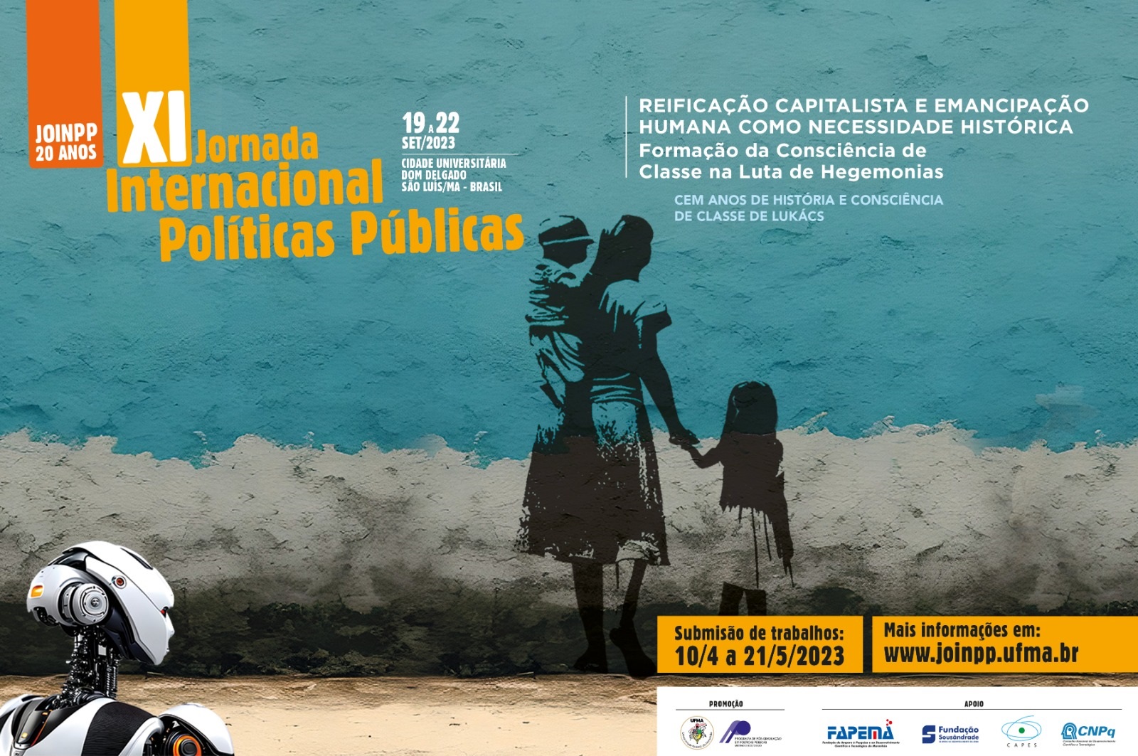 E, na última seção, EVENTOS, informa-se e se convida os leitores a participarem do evento XI Jornada Internacional de Políticas Públicas (XI JOINPP), com o tema “Reificação capitalista e emancipação humana como necessidade histórica: formação da consciência de classe na luta de hegemonias – Cem anos de História e consciência de classe de Lukács”. Será desenvolvido, em forma presencial, na Cidade Universitária Dom Delgado, São Luís/MA – Brasil, no período de 19 a 22 de Setembro/2023